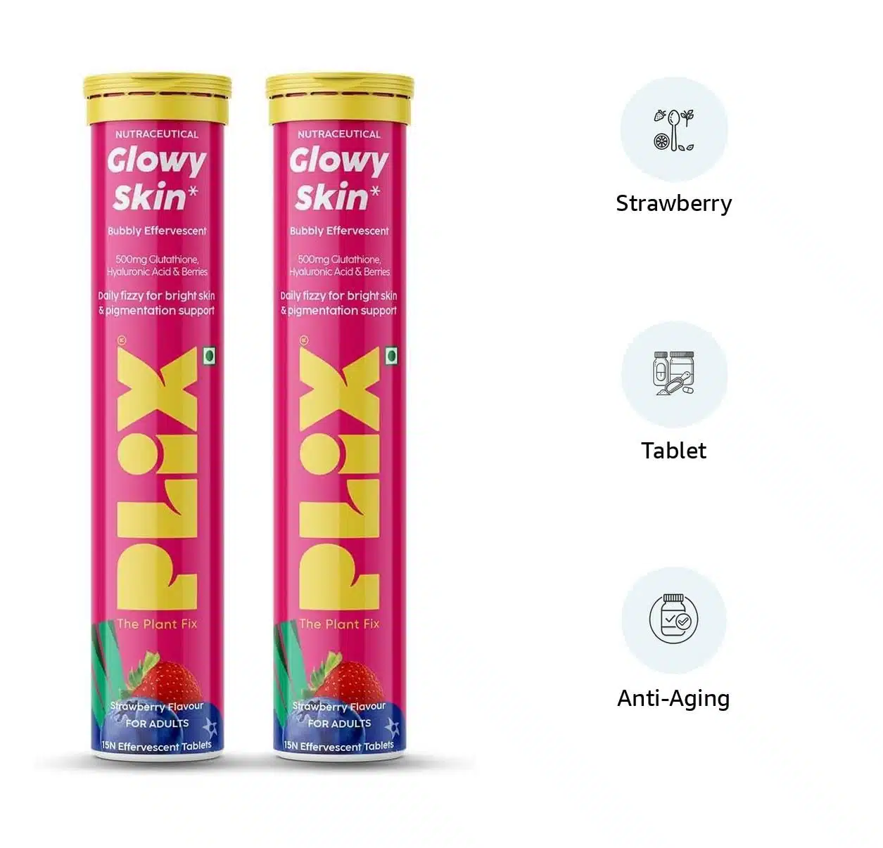Say goodbye to dullness, acne, and early signs of aging with PLIX – The Plant Fix Glutathione Tablets. Specially designed to support glowing skin and boost collagen naturally, this strawberry-flavored effervescent tablet is a perfect addition to your daily skincare routine.