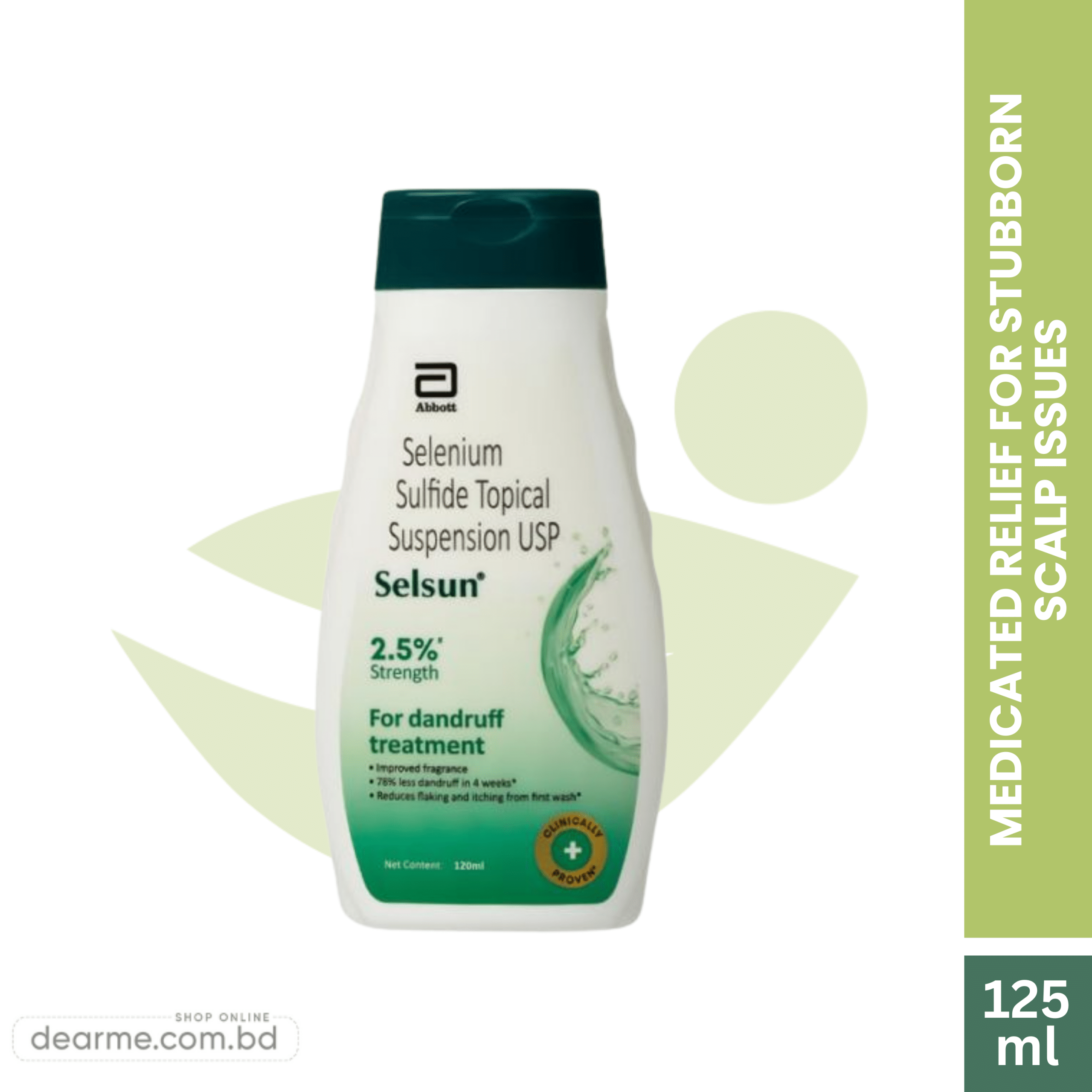 Selsun 2.5% Topical Suspension is a high-potency medicated treatment designed to eliminate severe dandruff and seborrheic dermatitis. In the humid climate of Bangladesh, where fungal growth on the scalp is common, this suspension serves as the ultimate খুশকি দূর করার উপায় (dandruff removal) solution.